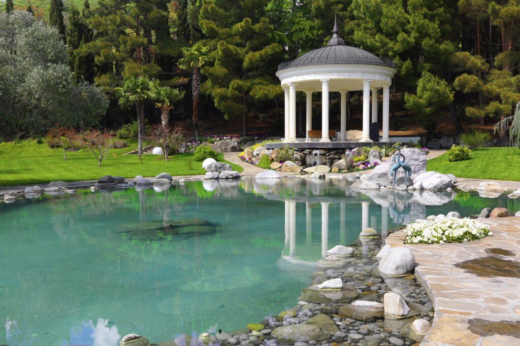 - Vízi Növények és Dekorációk: Vízi növények telepítése és esetleges további dekorációk, mint például szökőkutak vagy szobrok, elhelyezése.